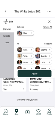 Secondary Audiences: People who recently watched a film/TV show and want to quickly and precisely spot the styles that the characters wore.